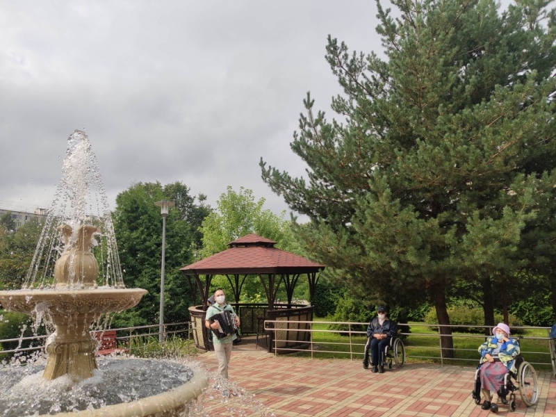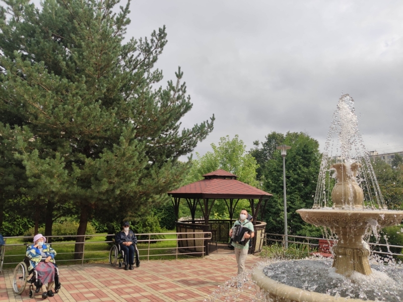 «Музыка, музыка, музыка – ты способна заставить нас жить»! Психологи утверждают, что музыкотерапия служит превосходным средством для того, чтобы поддерживать в норме как психологическое, так и физическое здоровье людей преклонного возраста. В связи с этим в нашем центре культорганизатор – Е. В. Мироненко ежедневно проводит мини концерты для ветеранов. В летний период ветераны занимают места у фонтана и с большим удовольствием слушают мелодии своей молодости. А более активные подпевают и составляют конкуренцию в исполнении своих любимых песен. «Песни нашего времени, настолько мелодичны и красивы, что невозможно их просто слушать, хочется двигаться и петь всей душой»,- делится своими чувствами ветеран центра М.А. Смолько.